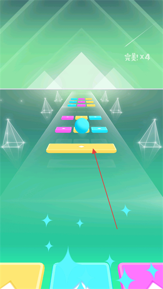 2、操控小球落到同色方块上,积累完美×2的评价,保持节奏推进。