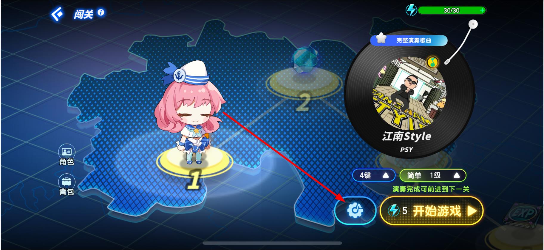 2、在关卡1界面,点击设置图标,进入设置页面。