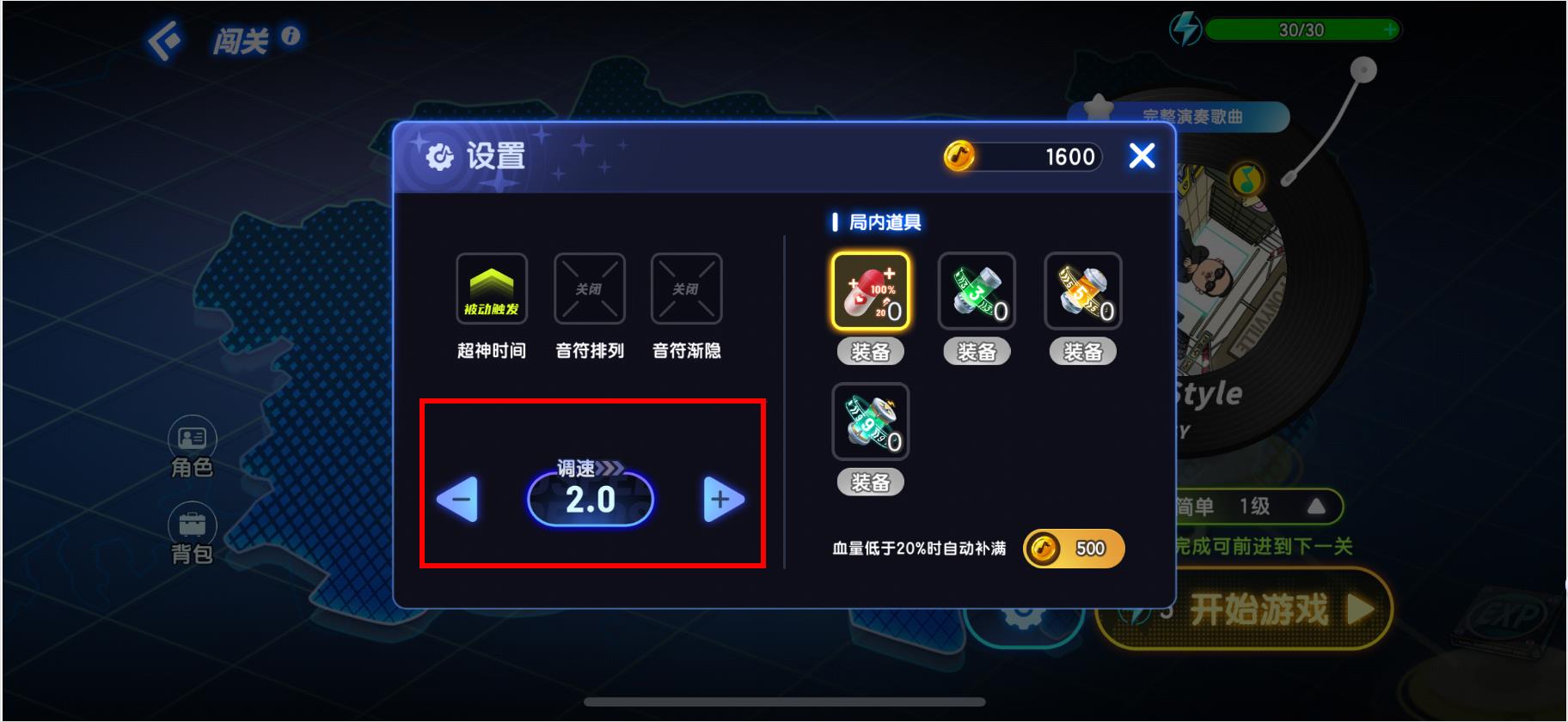 4、多种速度调节:承了传统敲击音符玩法,加入适合触屏的滑动玩法