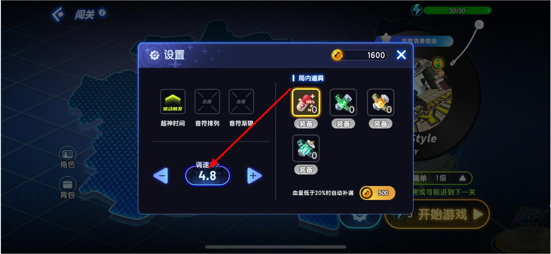 4、通过设置页面的调速按钮,可将速度调整为4.8。