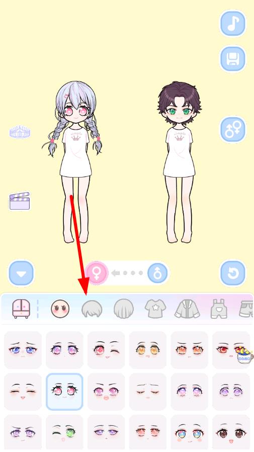 1、进入游戏后创建属于自己的娃娃角色,选择基础脸型、发型、肤色和体型,调整五官细节,进入装扮界面开启时尚搭配之旅。