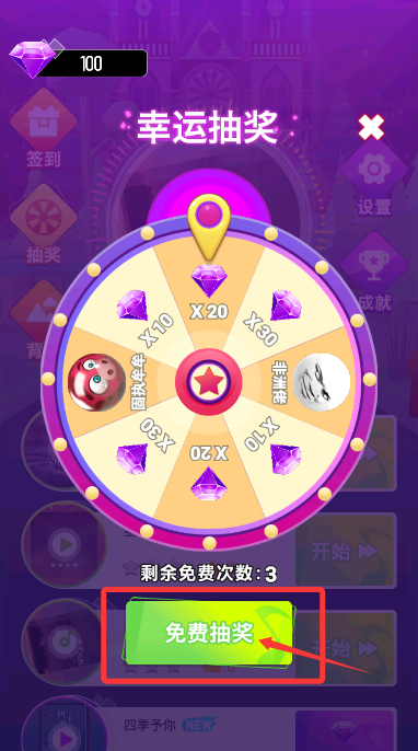 2、前往幸运轮盘处,使用免费机会抽取稀有道具和额外宝石。