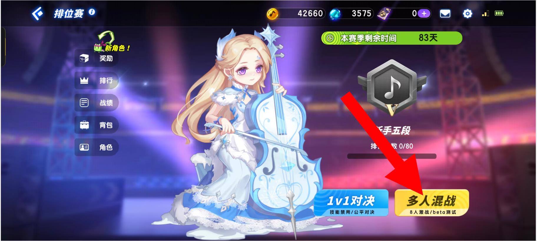 3、进入排位赛界面后,可以选择多人混战模式可参与排位赛。