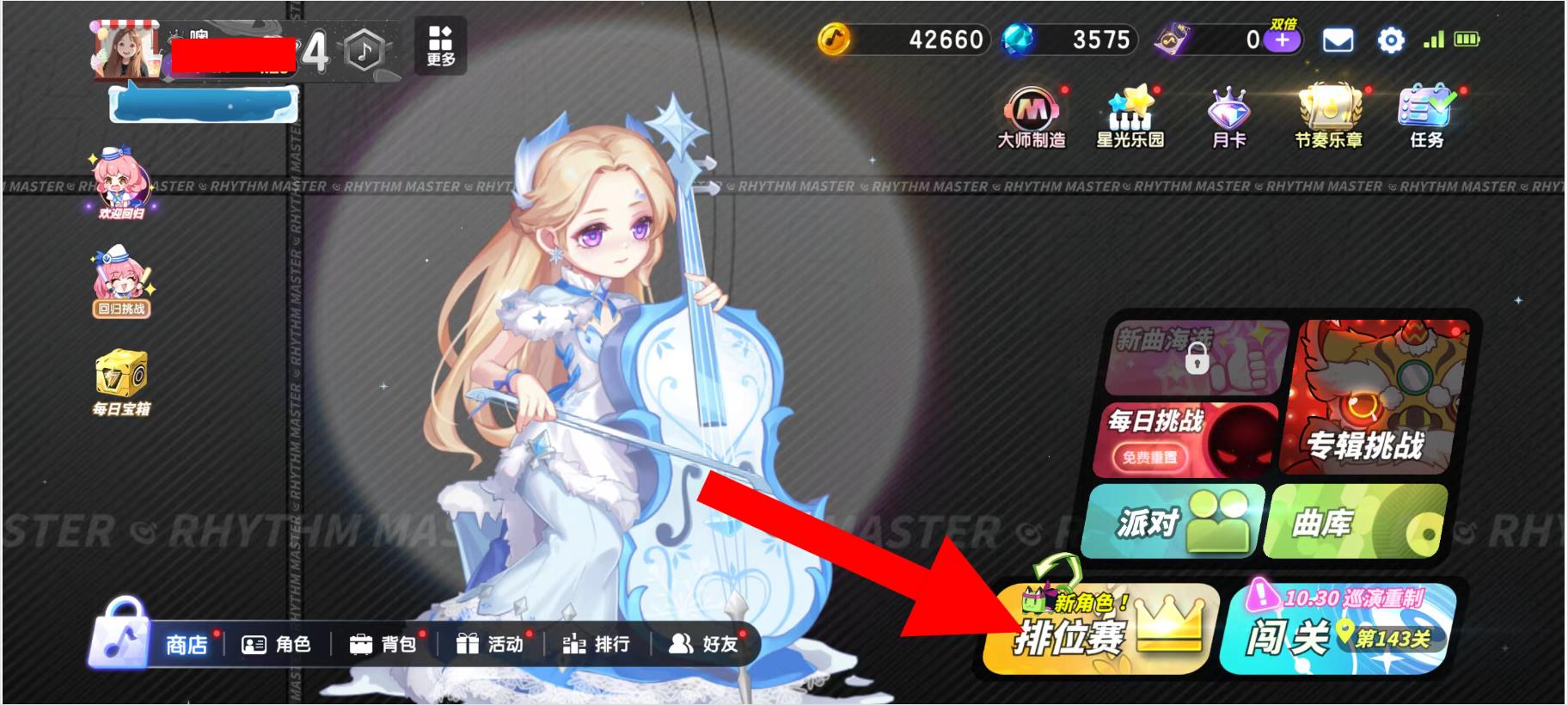 1、打开节奏大师游戏,在主界面点击开始游戏进入游戏内主页面。