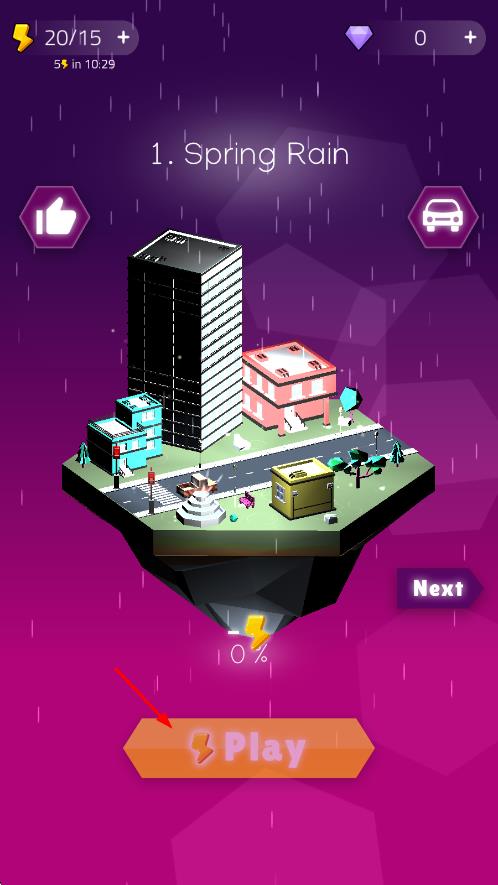 1、进入游戏后选择喜欢的曲目与车辆,熟悉屏幕上的节奏按键布局,等待音乐响起,准备跟随节奏操作。