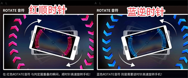 5、旋转音符,红色顺时针旋转手机,蓝色逆时针旋转手机