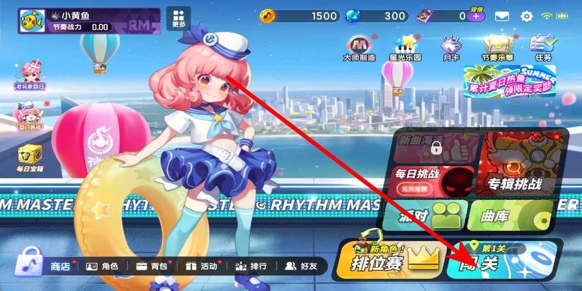 1、进入界面后,点击开始游戏,跳转至主场景,随后选择闯关,初始关卡多为简单节奏曲目,深入了解音符点击规则与节奏判定标准,全面体验备好基础内容。
