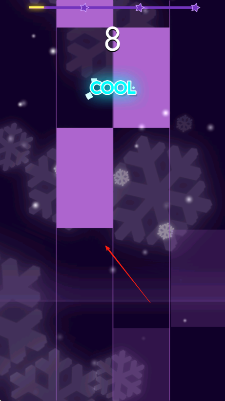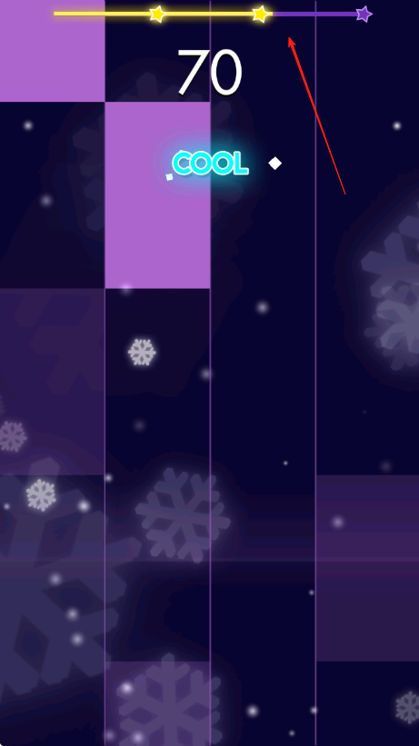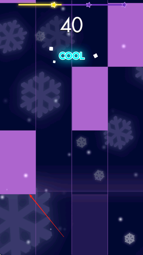 2、留意不同颜色线条和星星标记,按照节奏依次点击下落的紫色方块,保持点击时机准确,获取更高评价和分数。