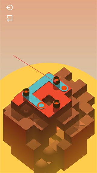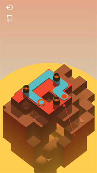 2、利用场景中的机关和平台特性,规划小球滚动路线,让小球接触蓝色部件。