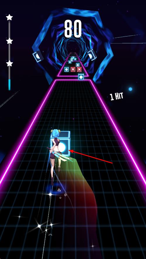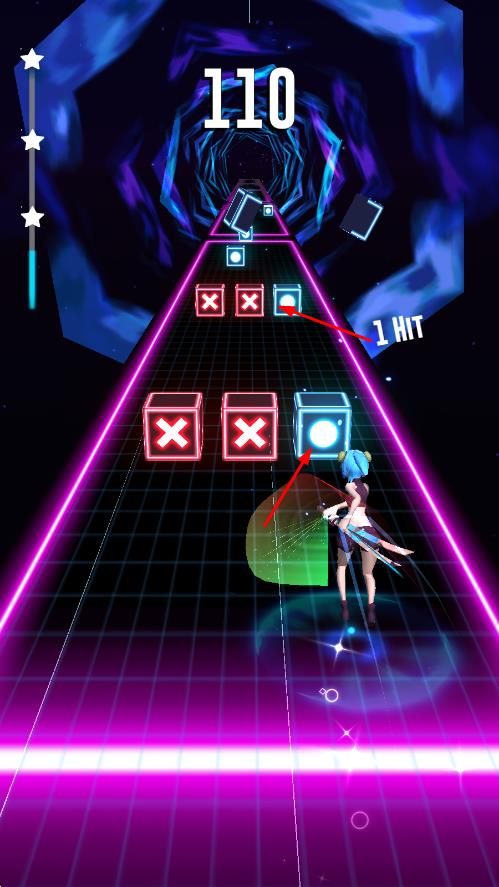 2、在音乐播放过程中,当方块移动至指定区域时,滑动屏幕完成精准斩击,积累连击提升得分。