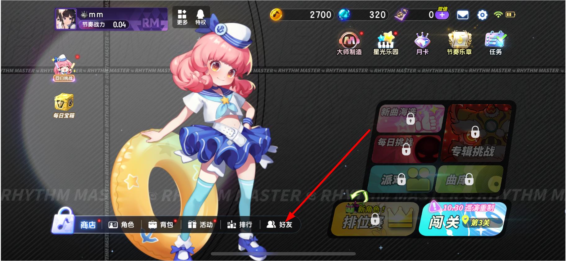 1.打开节奏大师游戏,点击界面下方开始游戏进入游戏主界面。
