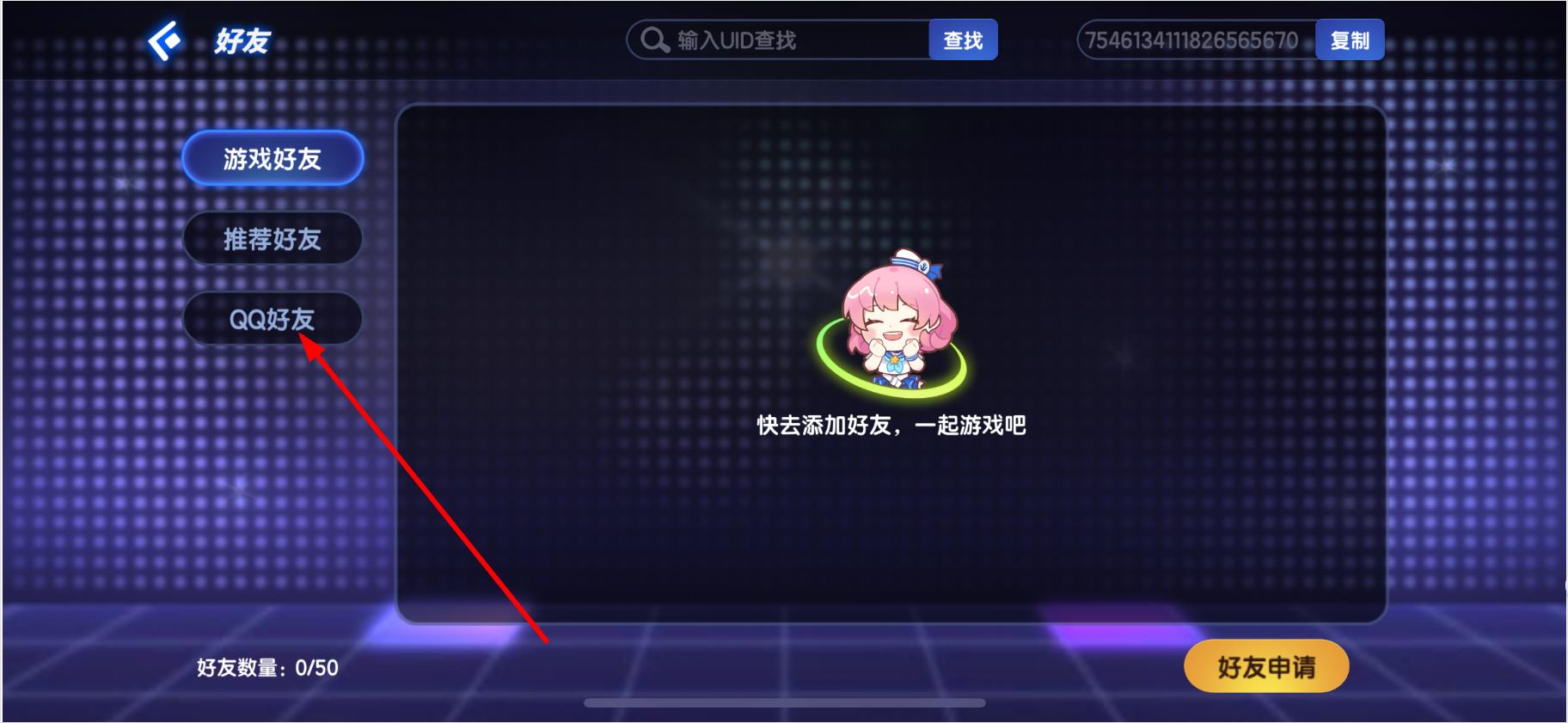 2.在游戏主界面下方导航栏中,点击好友按钮。