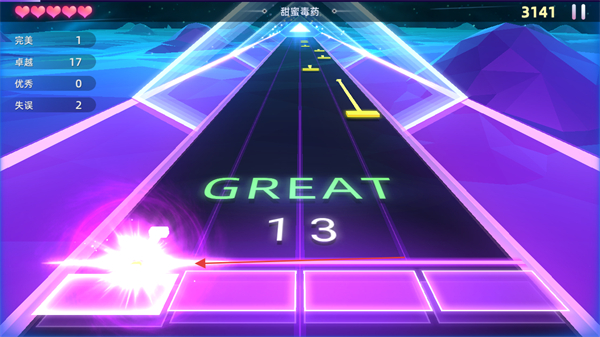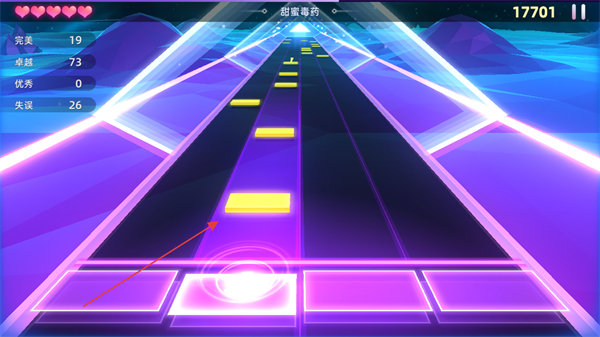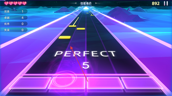1、进入游戏,选择歌曲如甜蜜毒药,留意屏幕左侧的评分统计,包括完美,卓越,优秀,失误次数。