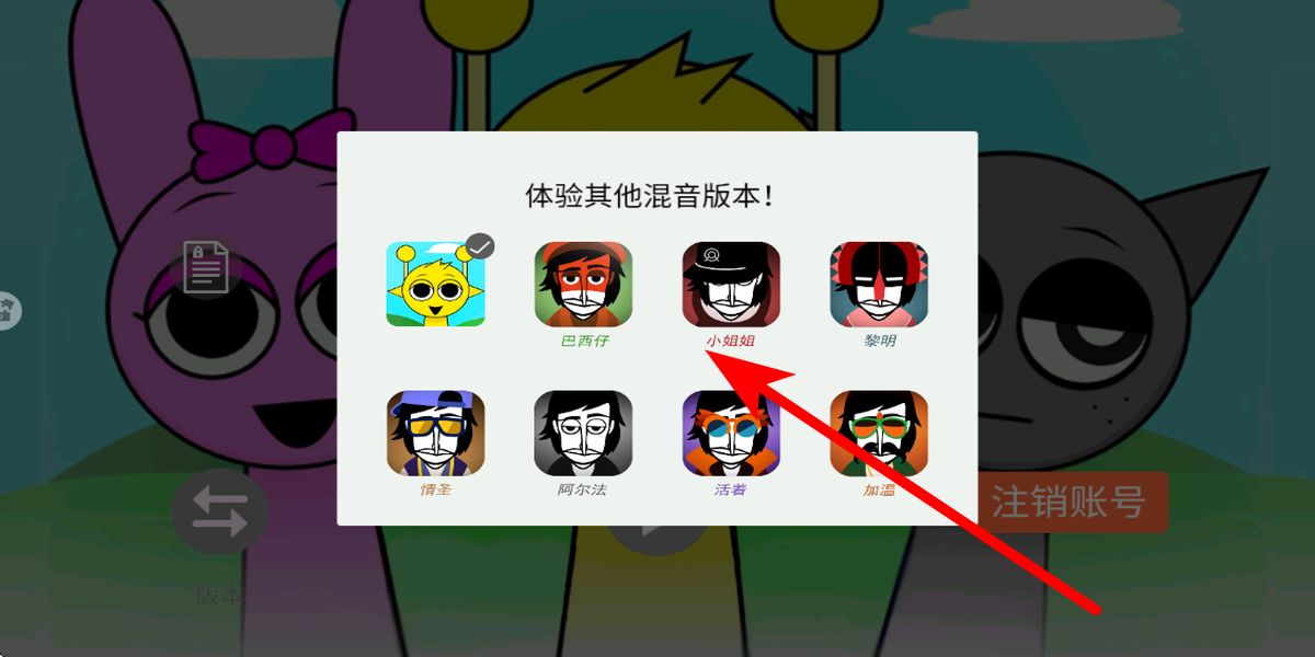1、点击开始游戏,进入体验其他混音选项界面,这里有巴西仔小姐姐黎明等多种角色混音可选,点击喜欢的即可进入对应混音模式,开启音乐创作之旅。