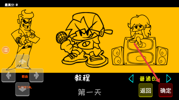 3、选定教程模式与普通难度后,按着指示点击右下角确定按钮,正式开始音乐节奏挑战。