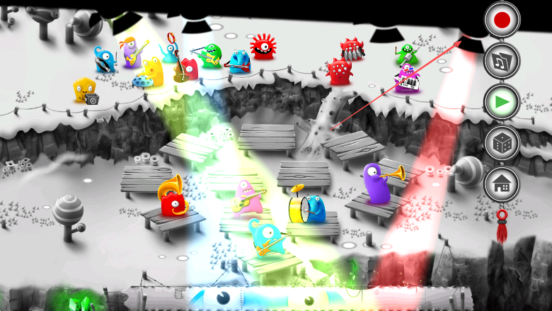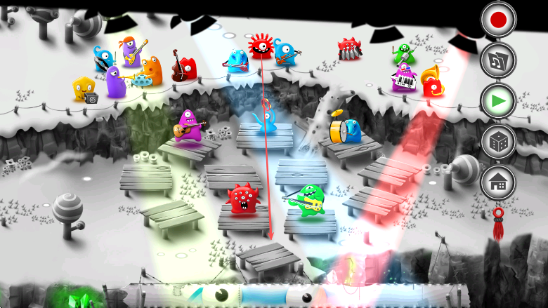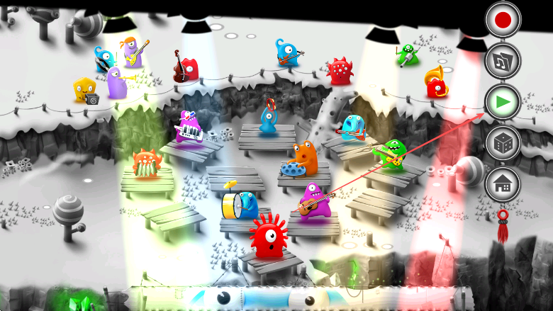 3、随音乐进行不断调整果冻怪物位置、利用功能按钮控制演奏进程、完成一场精彩的音乐表演。