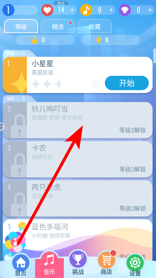 3、若想弹奏其他音乐歌曲,可以在歌曲选择界面,挑选像铃儿响叮当这类已解锁或符合条件的歌曲,点击进入弹奏体验。