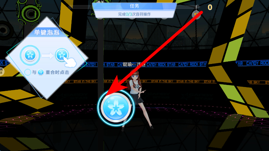 4、跟随节奏操作时,在演出过程中,根据音乐的节奏,进行相应的音符操作,如点击单键泡泡等,感受音乐与舞蹈结合的游玩乐趣。