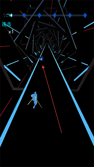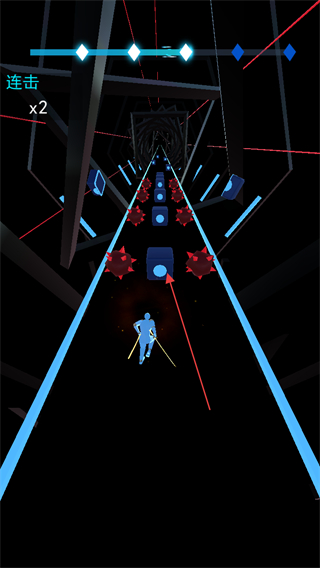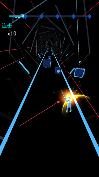 4、注意躲避红色障碍物,持续击打方块,保持连击,直至完成歌曲演奏。