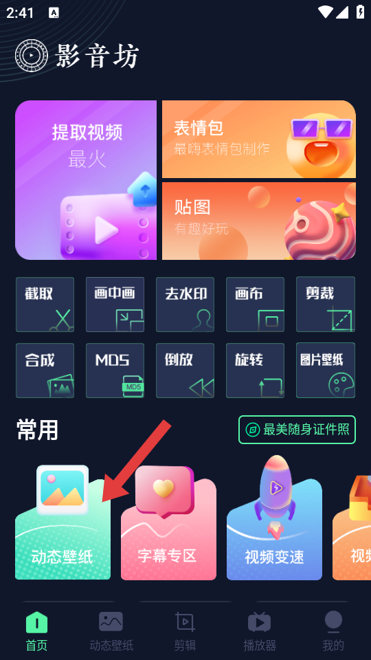 1、在影音坊首页常用区域,点击动态壁纸选项,进入动态壁纸选择界面。