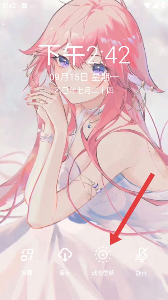 3、在壁纸预览界面,点击底部的动态壁纸按钮,加载动态效果。