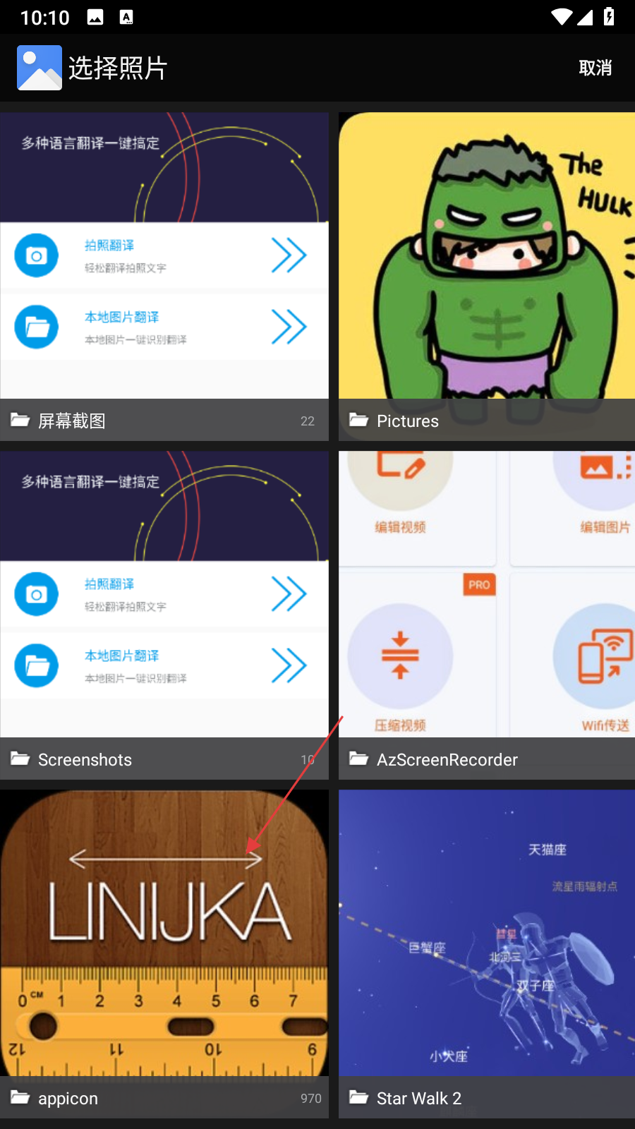 2、进入选择照片界面后,找到并选中需要翻译的本地图片。