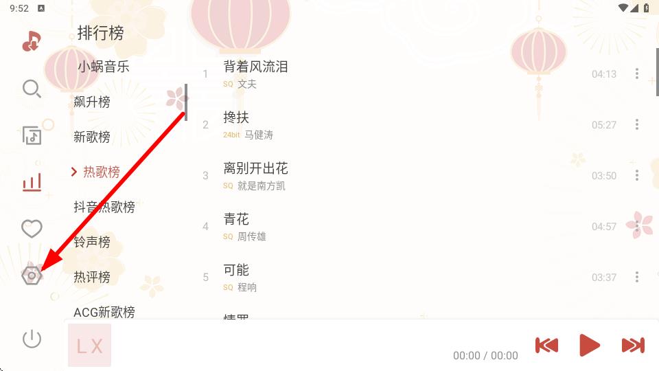 1、打开洛雪音乐助手软件,点击主界面左侧底部的设置按钮六边形图标进入设置页面。