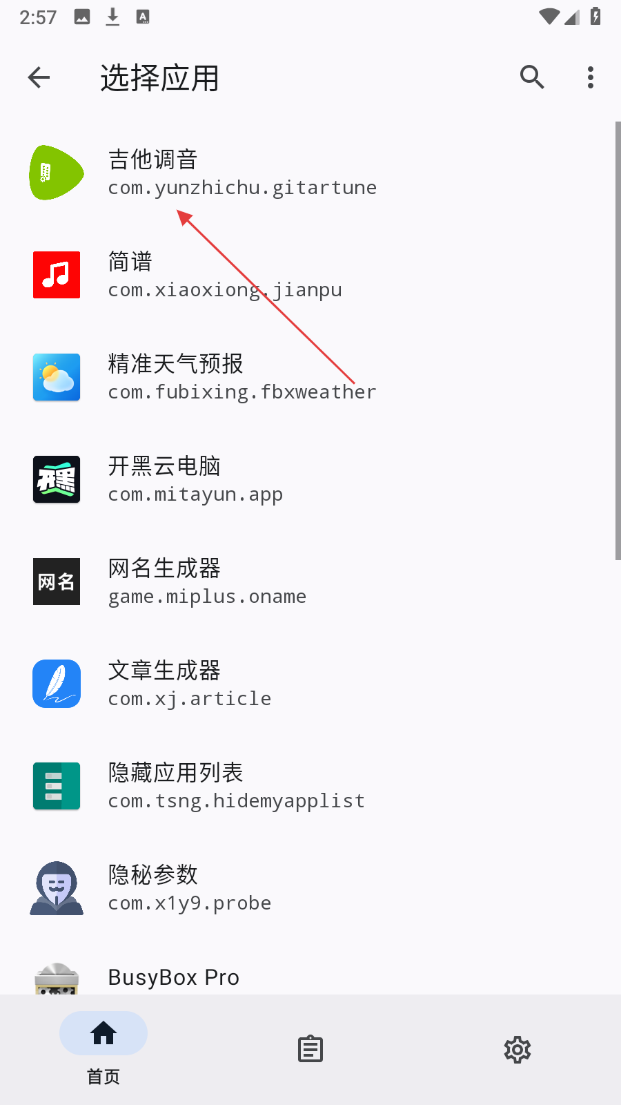 2、进入应用管理列表之后,选择自己需要隐藏的应用点击即可。