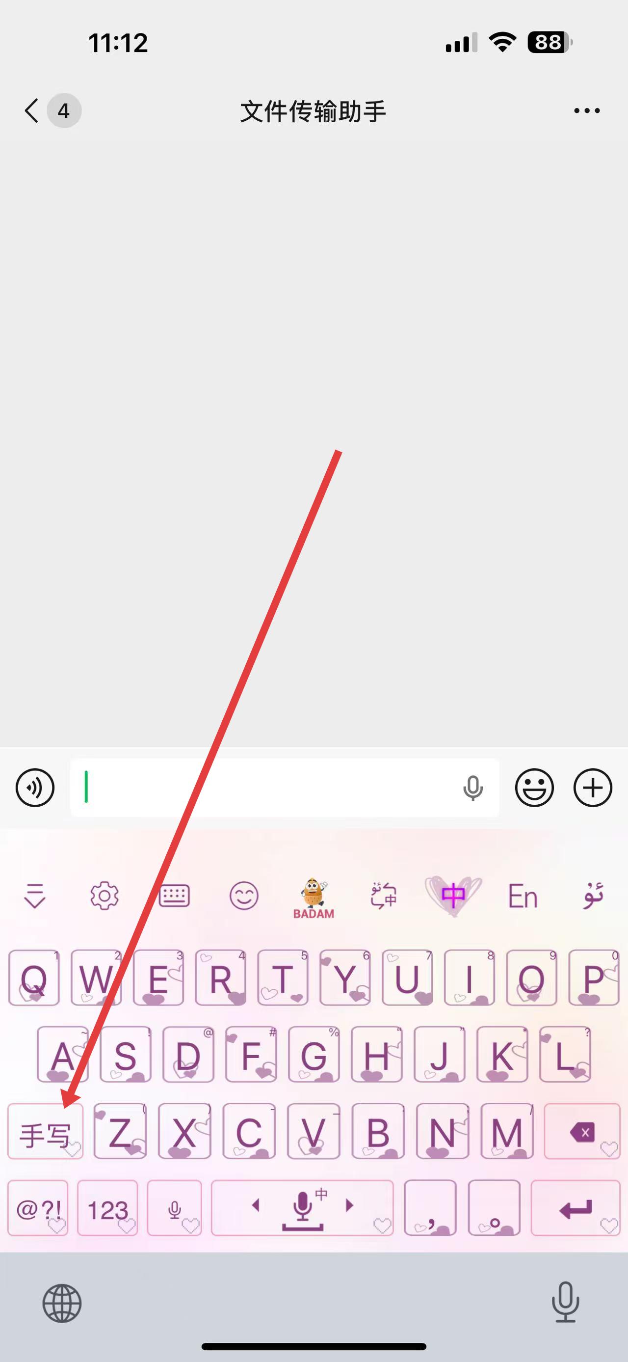 1、在维语输入法键盘界面,点击手写按钮,进入手写输入模式。
