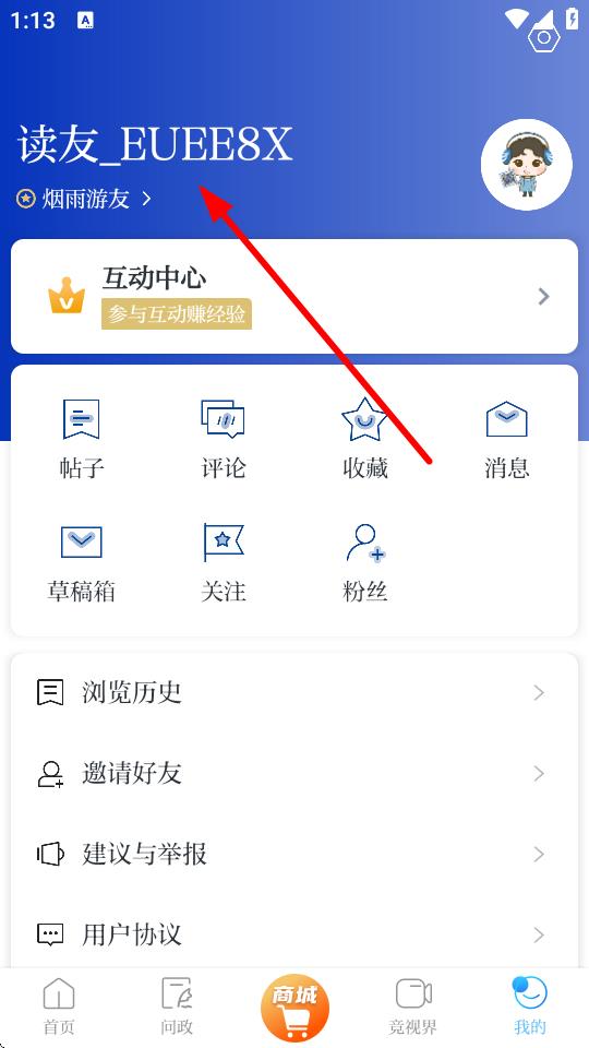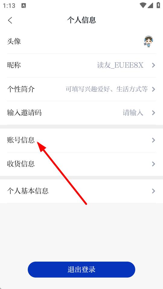 1、在个人页面中,点击上方的用户名区域,进入个人信息页面。