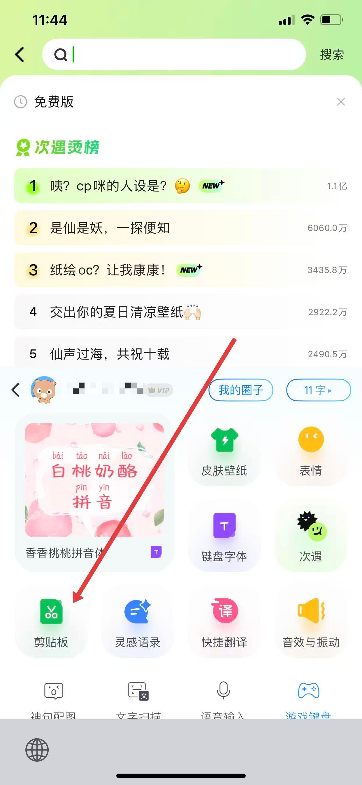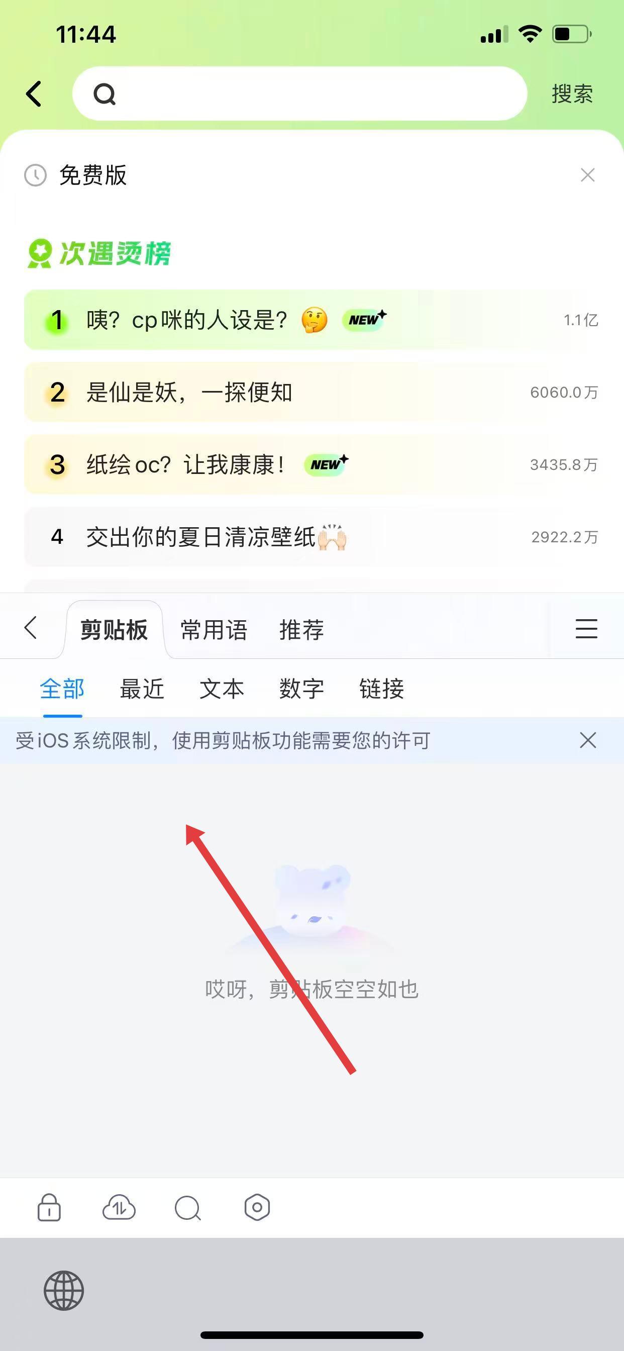 3、点击后即可进入剪贴板界面,查看复制过的文本、数字、链接等内容,点击相应内容就能快速粘贴使用。