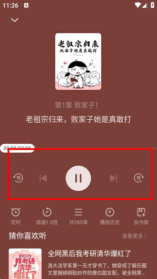 4、进入听书模式后,可以通过播放界面控制播放、暂停、快进、快退,还能设置定时、调整语速等个性化功能。