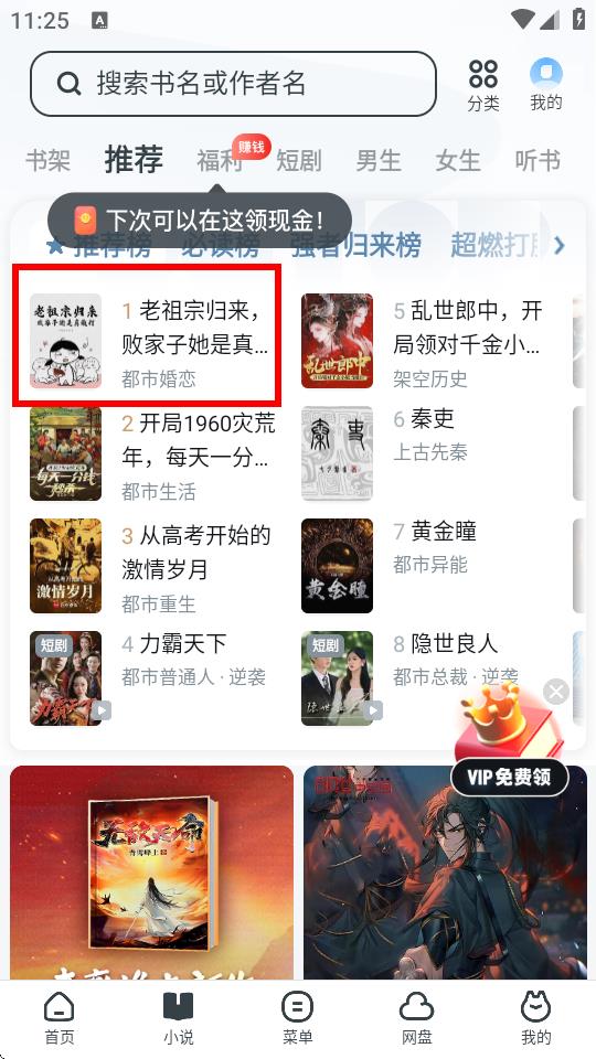 2、在小说频道中选择想要阅读的小说,进入书籍详情页。