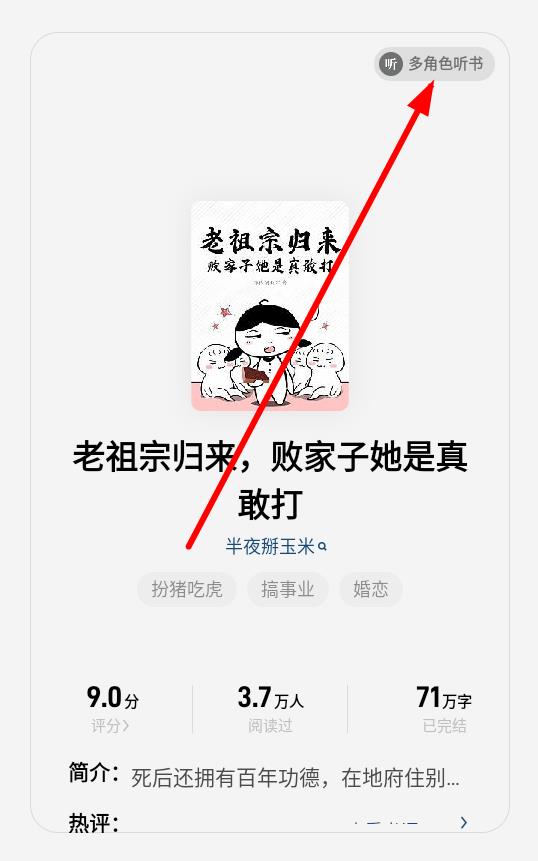 3、在书籍详情页中,点击右上角多角色听书按钮。
