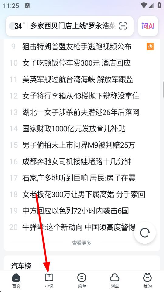 1、打开uc浏览器点击底部小说按钮进入小说频道。
