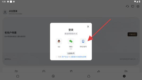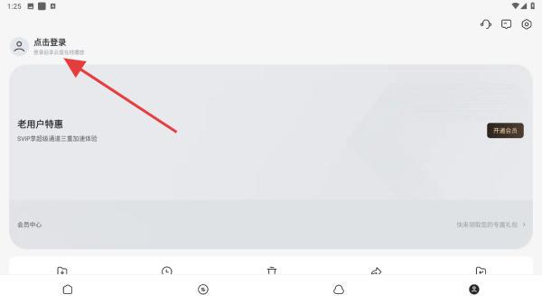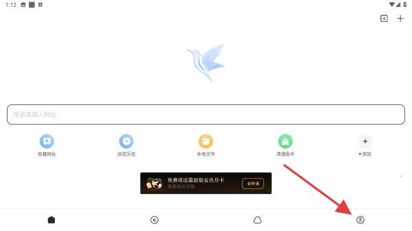 1、打开迅雷APP,找到并点击界面底部导航栏最右侧的我的图标,跳转到该页面。