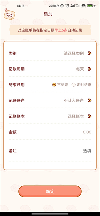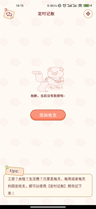 Tips:工资?房租?生活费?只要是每月、每周或者每天的固定收支,都可以使用 [定时记账] 帮你记下!