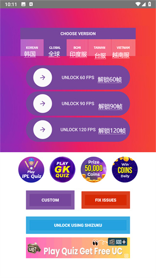 1、通过本站下载,打开后分别选择【GLOBAL】(全球模式)和【UNLOCK 90 FPS】(解锁90帧)这两个选项;