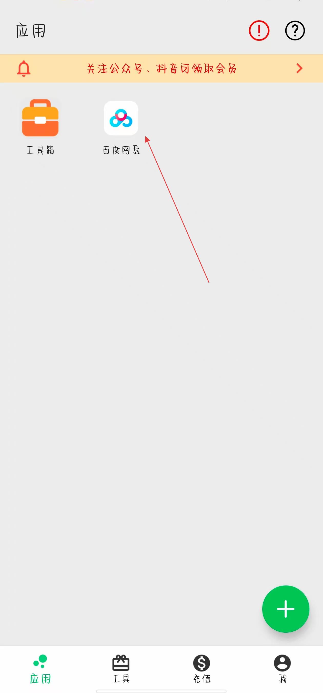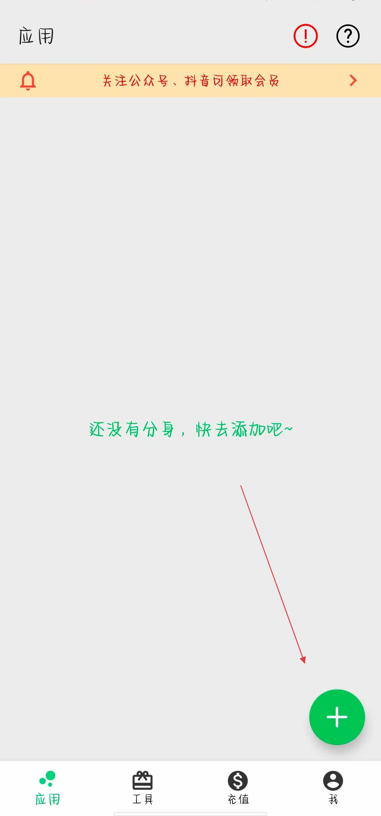 1、打开幻影分身应用进入主界面,在界面右下角点击绿色带有+号的按钮,进入选择应用的页面。