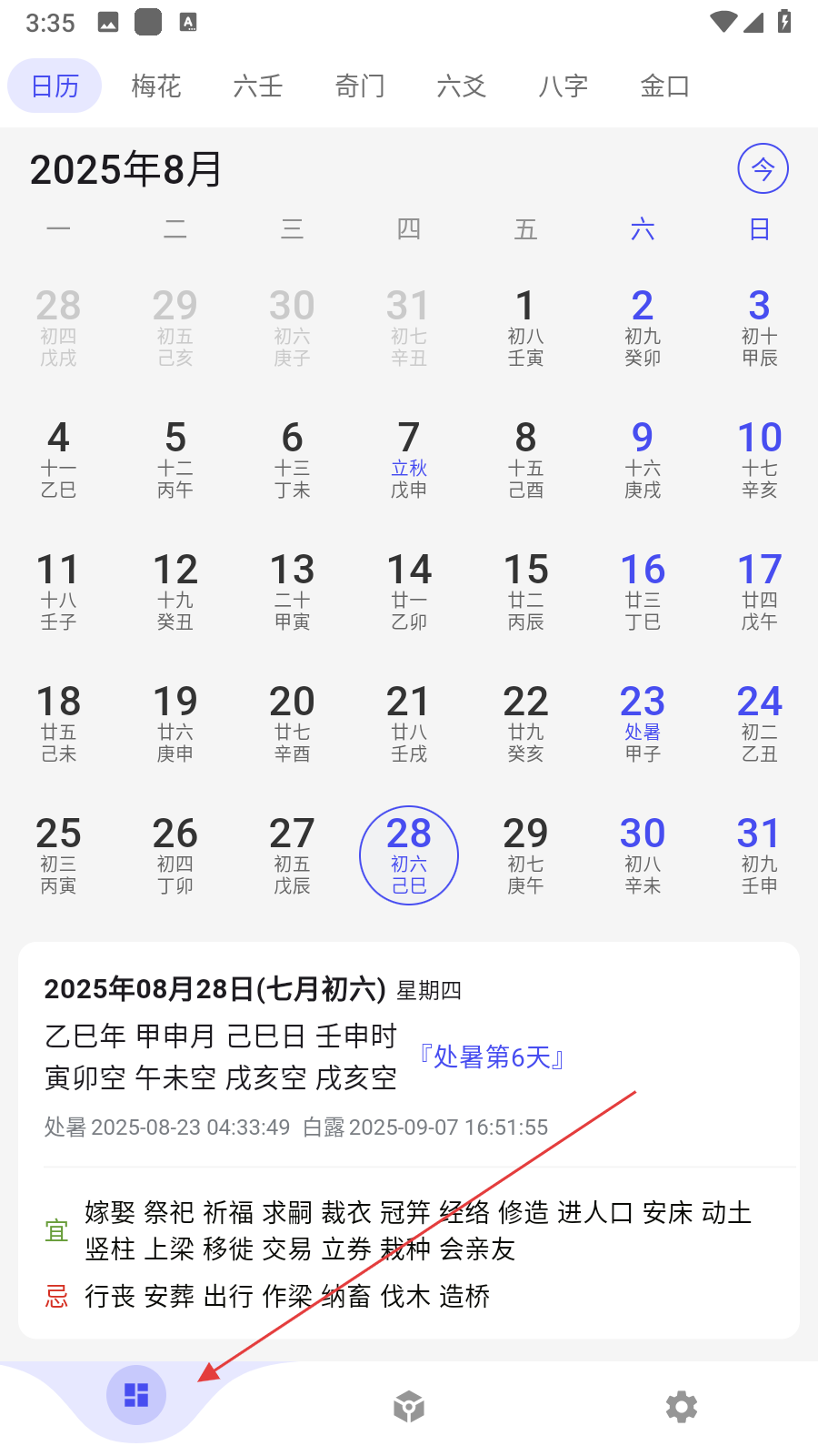 1、打开易瑞笔记应用,进入到日历或其他主界面后,点击底部导航栏中间类似魔方的图标,切换至笔记功能界面。