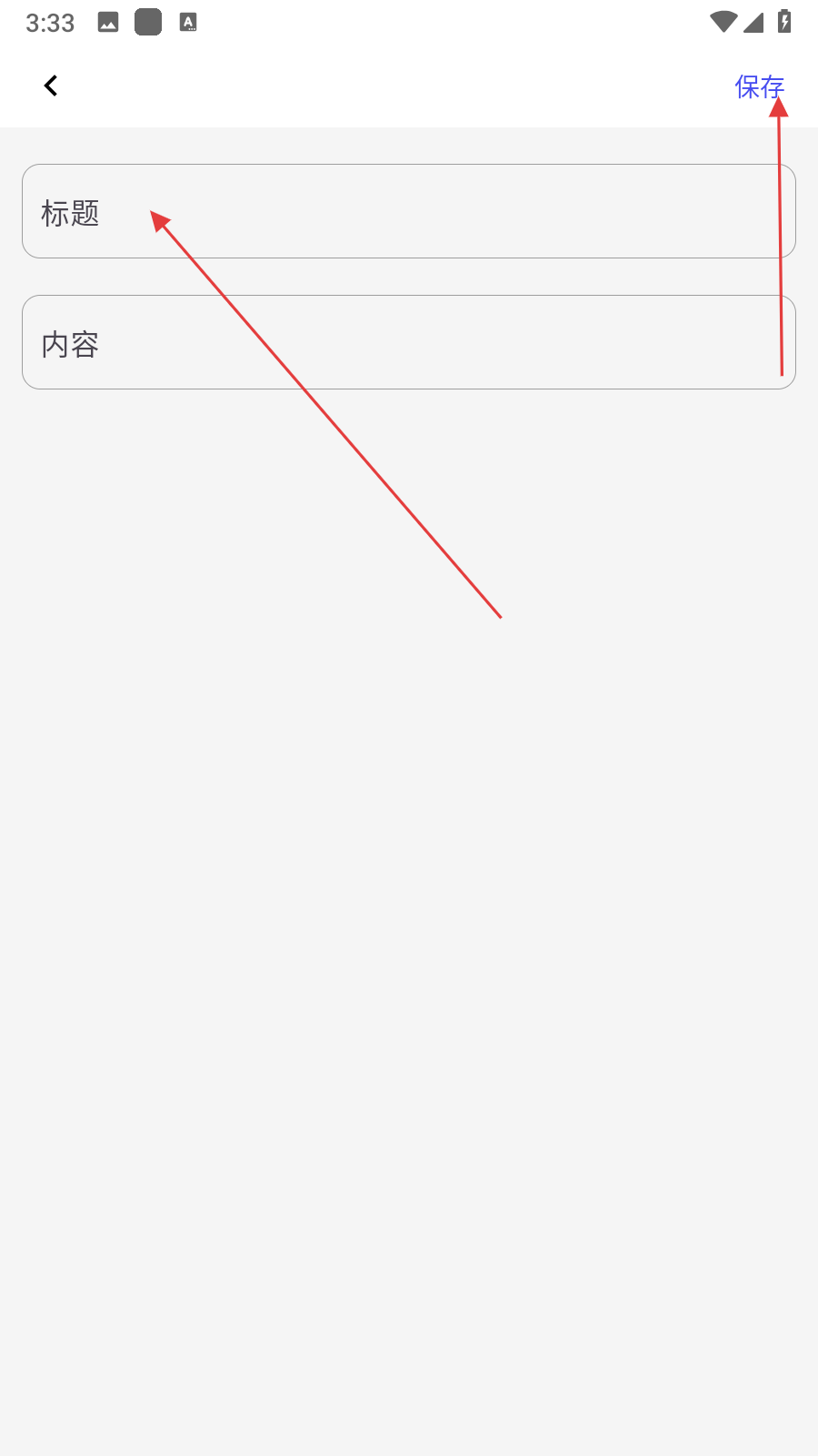 3、在新建笔记页面,在标题输入框中输入笔记标题,在内容输入框中输入笔记具体内容,完成后点击右上角的保存按钮,即可完成笔记的创建与保存。