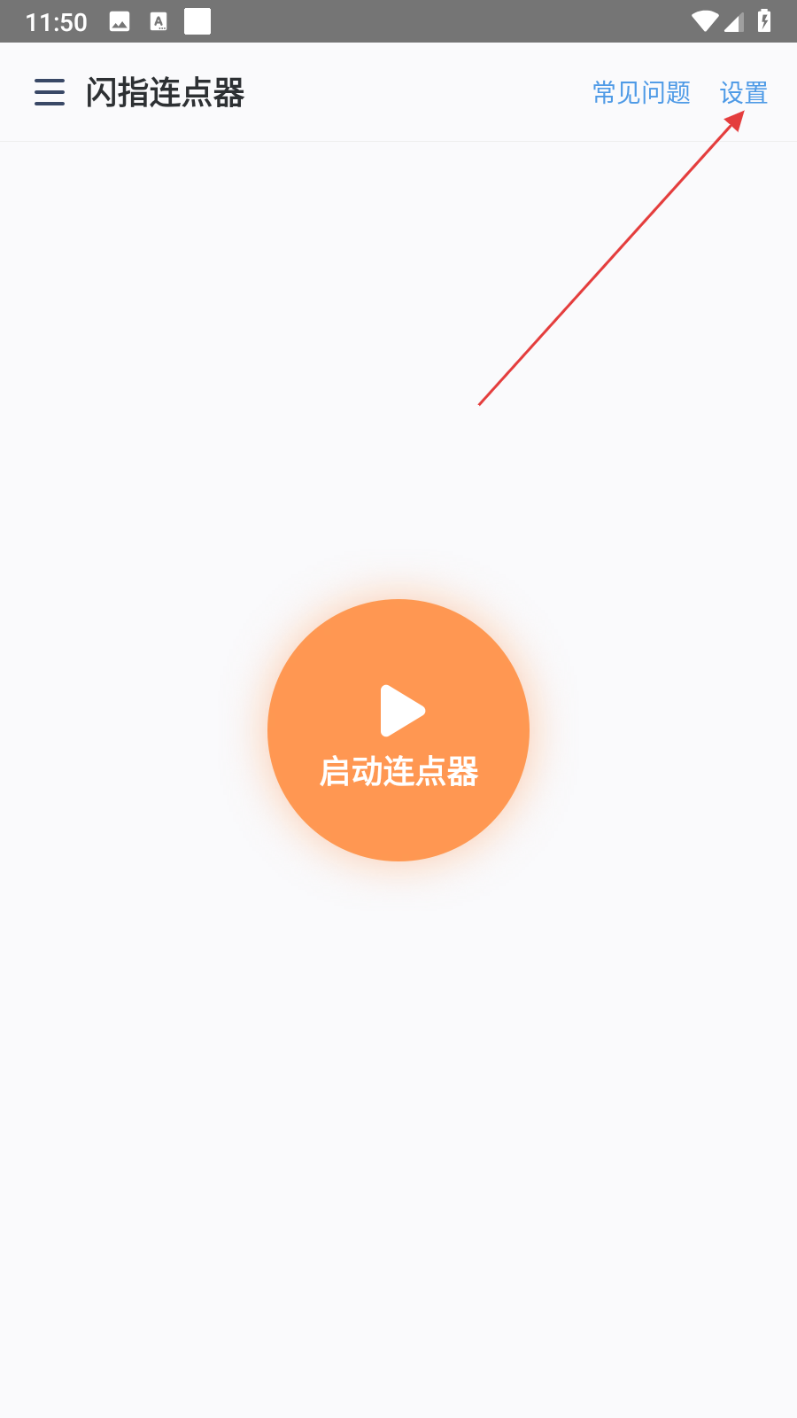 1、打开闪指连点器应用进入主界面,点击右上角的设置选项,进入设置页面。