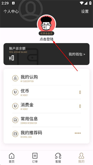 2、在个人中心页面,点击点击登陆,进入开始登录页面。