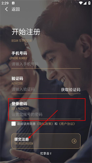 5、设置登录密码,点击提交注册,完成该应用的账号注册操作。