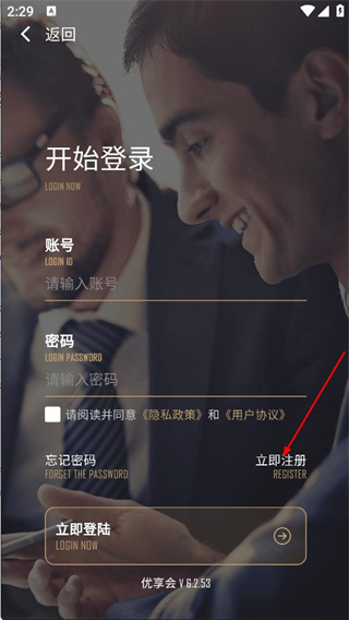 3、在开始登录页面,点击立即注册,进入开始注册页面。