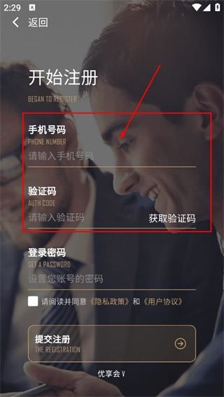 4、在开始注册页面,填写手机号码,填写收到的验证码后。