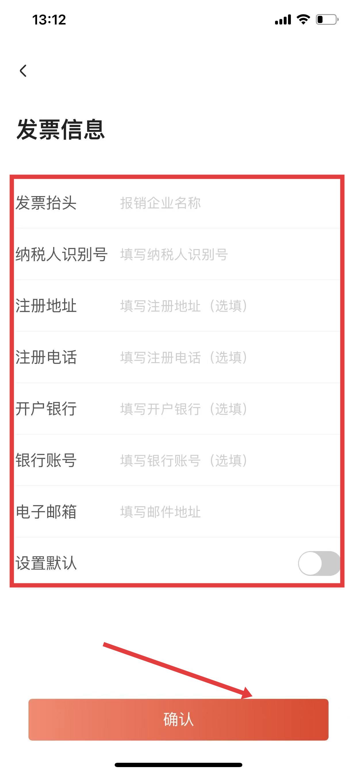 5、填写信息,点击确认 ,在行程结束且满足开票条件时,即可申请开具发票。