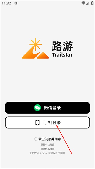 3、在登录选择界面,点击手机登录选项,进入手机号填写页面。