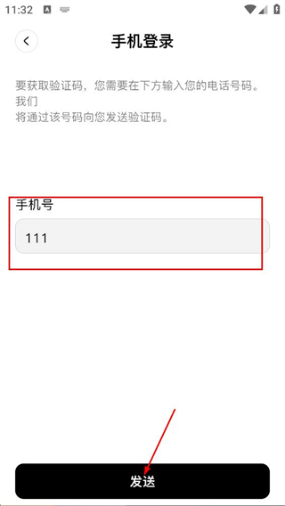 4、在登录页面,填写手机号对应的信息,点击发送获取验证码。