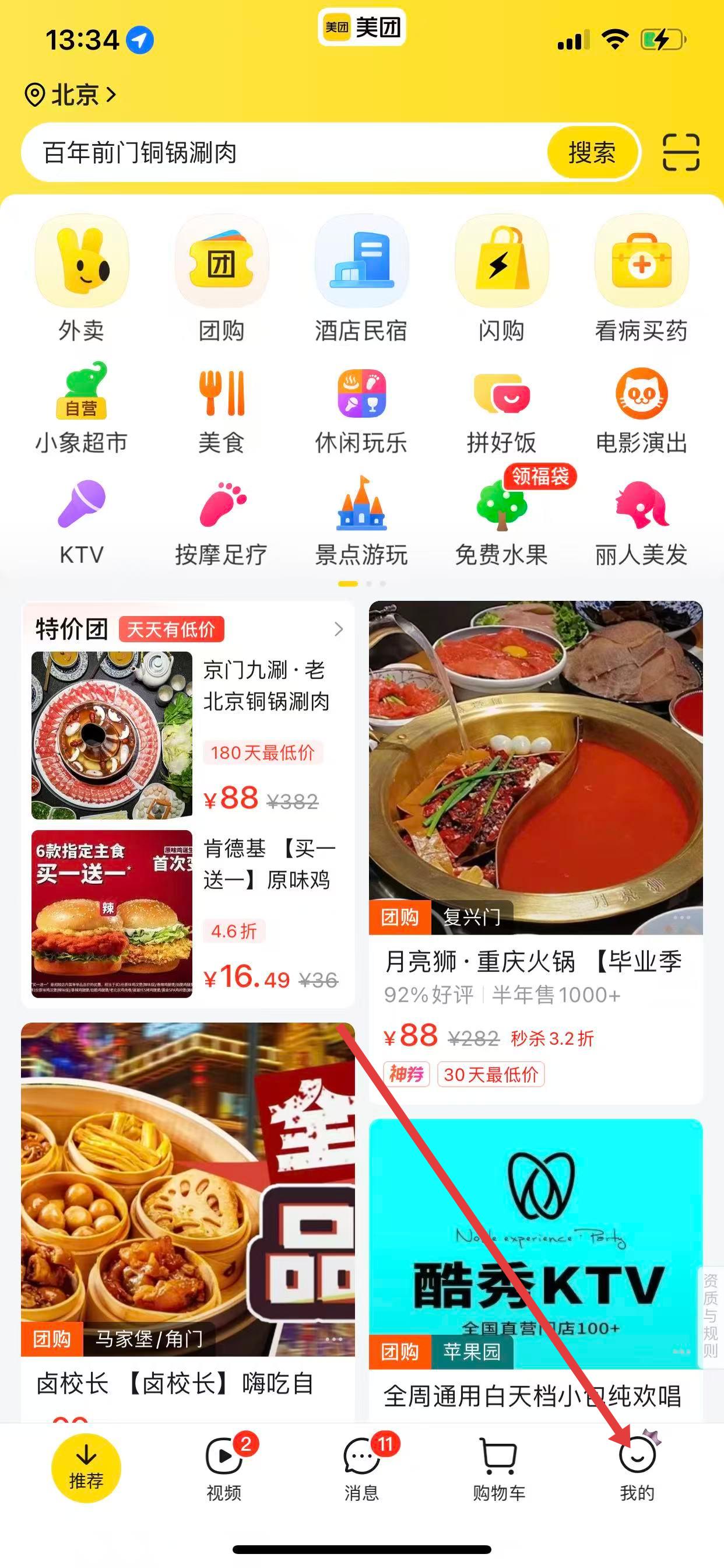 1、打开美团APP,点击首页右下角我的选项,进入个人中心页面。